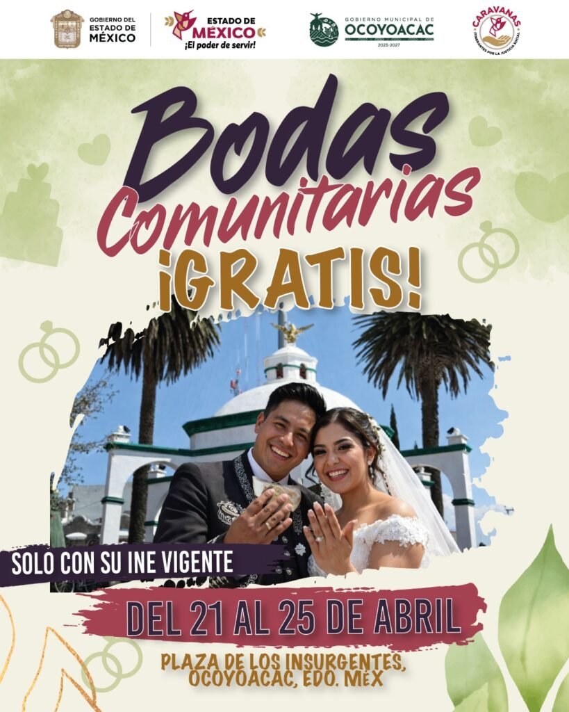 Uno de los beneficios más destacados es la realización de bodas gratuitas, una oportunidad para que parejas del municipio formalicen su unión sin costo. Para acceder a este programa, únicamente deberán presentar su credencial de elector vigente (INE).