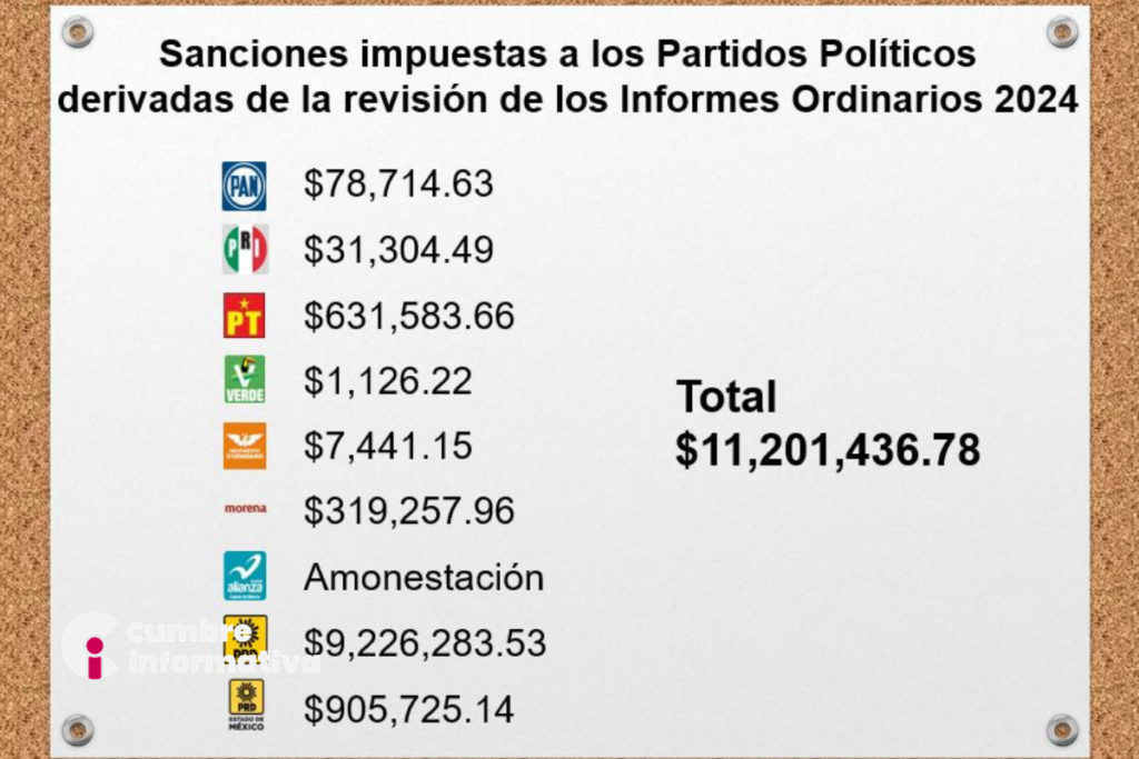 El Instituto Nacional Electoral (INE) posicionó al Partido Verde Ecologista de México (PVEM) como la fuerza política con mayores niveles de transparencia en el Estado de México, tras la revisión de su informe anual 2024. De acuerdo con las cifras oficiales, el PVEM registró el monto más bajo en observaciones, con apenas 1,126.22 pesos, en contraste con un proceso general que acumuló sanciones superiores a los 11 millones de pesos.