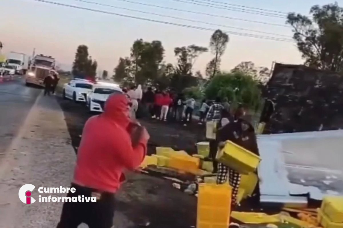 La volcadura de un tráiler cargado con pollos generó actos de rapiña y afectaciones viales sobre la carretera Toluca-Atlacomulco, a la altura del kilómetro 53, en la comunidad de El Ruso, en Santa María Endare, municipio de Jocotitlán.