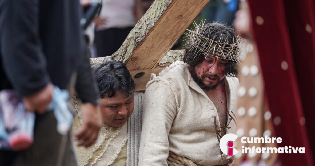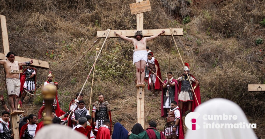 El momento más esperado se vivió en el Cerro del Calvario, donde se escenificó la crucifixión. En ese instante, el ambiente cambió notablemente: el cielo se nubló y una brisa fresca sustituyó el calor intenso que predominó durante gran parte del día.